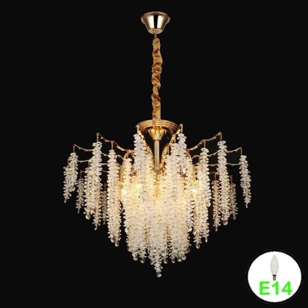Candelabru 8xE27 Metal Cristal d500mm Auriu