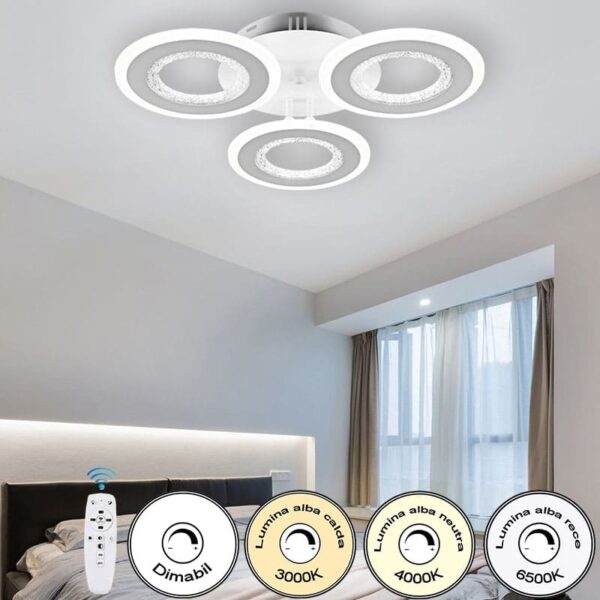 Lustra Led Dimabila 108W Trei Moduri Iluminare d520mm Alba
