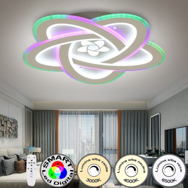 Lustra Led Dimabila 121W Trei Moduri Iluminare + Smart Led Digital RGB d560mm