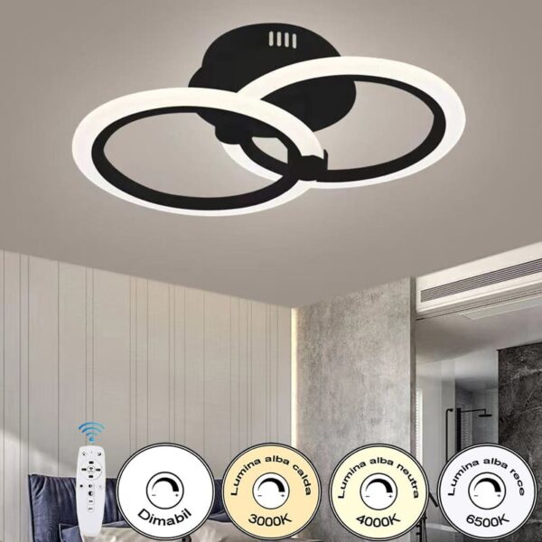 Lustra Led Dimabila 44W Trei Moduri Iluminare d400mm Neagra