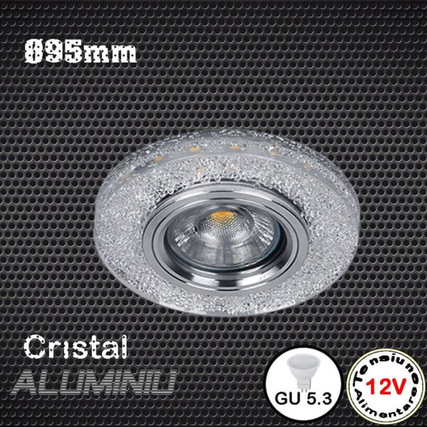 Spot Led GU5.3 Aluminiu Sticla + Inel 3W 4000K Ø95mm H22mm iP20 12V