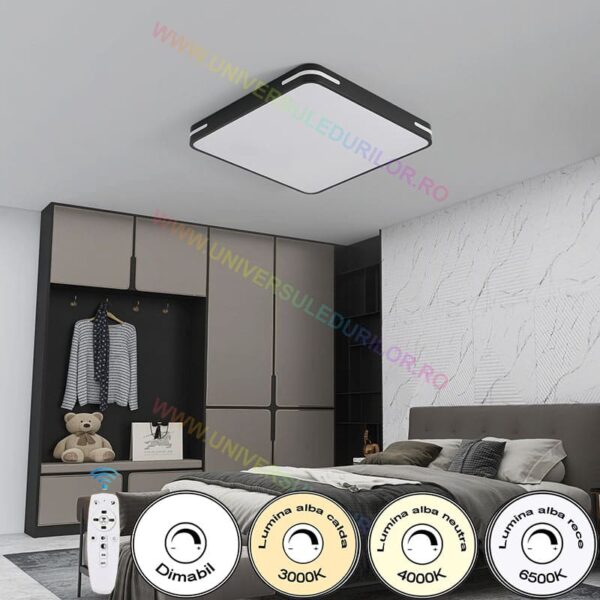 Aplică Patrata Led Dimabila 126W Trei Faze Iluminare d500mm Negru