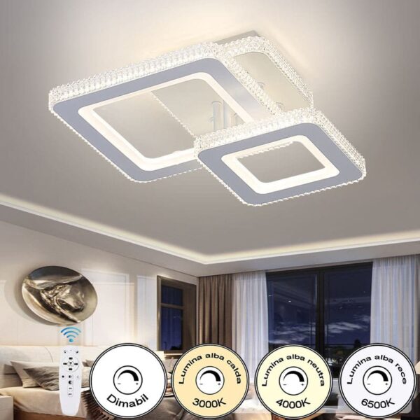 Lustra Led Dimabila 83W Trei Moduri Iluminare d420mm Alba