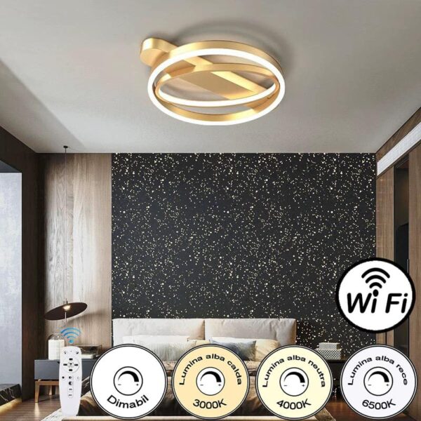 Lustra Led Dimabila 120W 4200Lm Trei Moduri Iluminare d500mm Auriu