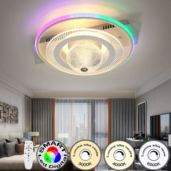 Lustra Led Dimabila 66W Trei Moduri Iluminare + Smart Led Digital RGB d520mm