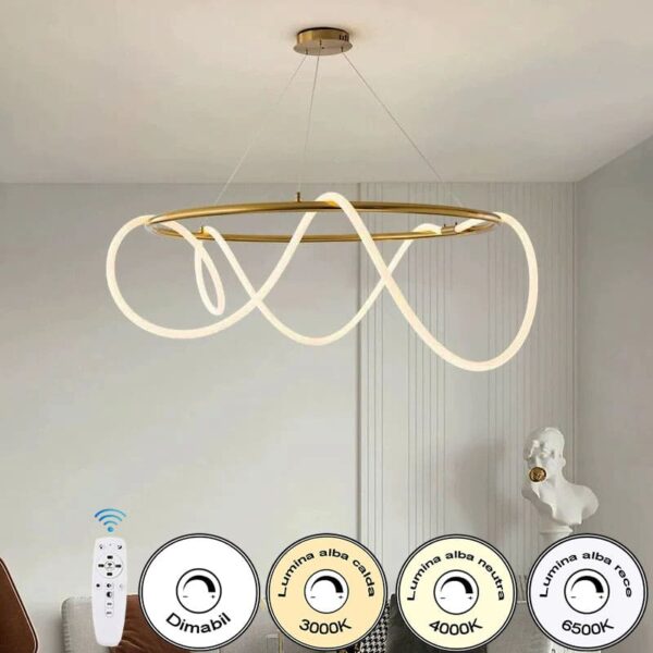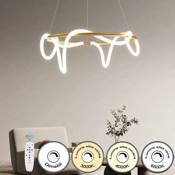 Lustra Led Dimabila Suspendata Neon Flex 192W Trei Moduri Iluminare d600mm Auriu