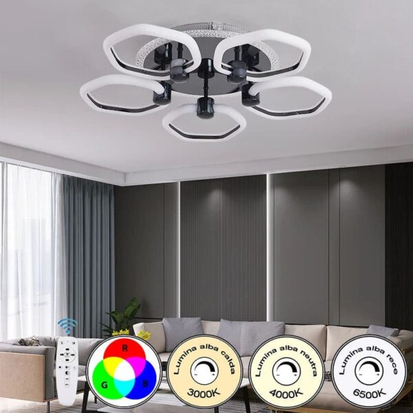 Lustra Led 136W Dimabila Trei Moduri Iluminare + RGB d600mm Negru Telecomanda