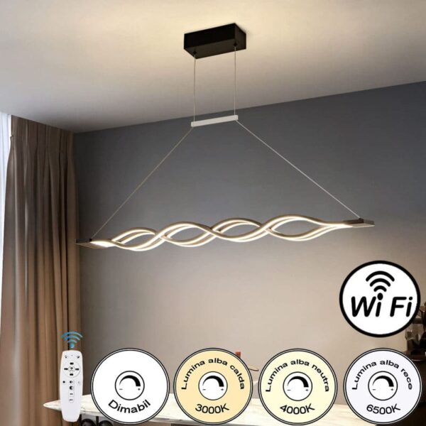 Lustra Led Dimabila Suspendata 152W Trei Moduri Iluminare WiFi 2.4G d1000mm Negru