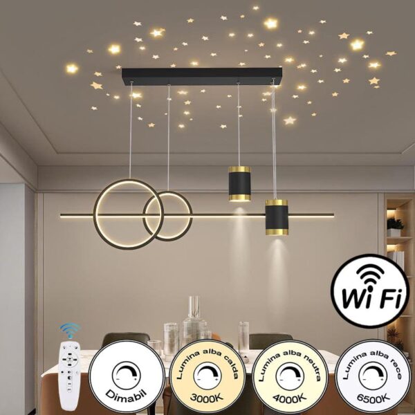 Lustra LED Dimabila 108W 5200Lm Trei Moduri Iluminare WiFi 2.4G d400mm Negru