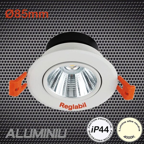 Spot Led Rotund Aluminiu Reglabil 8W 4000K d85mm iP44 Alb 230V