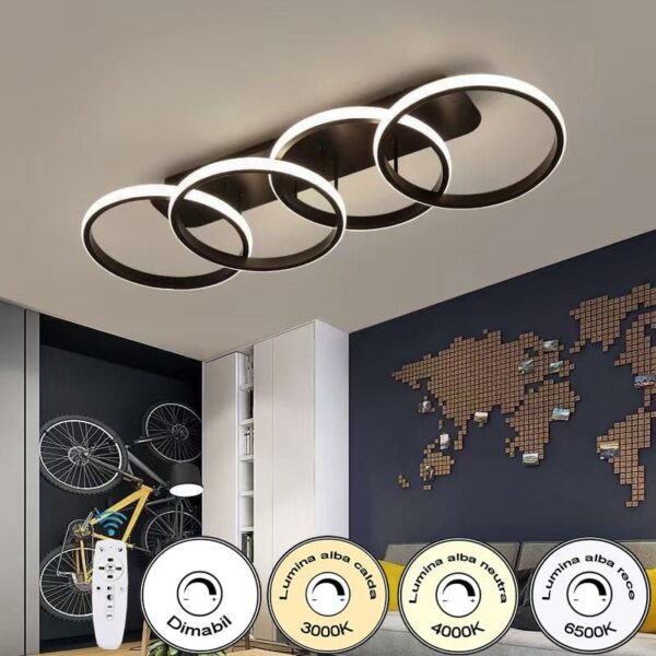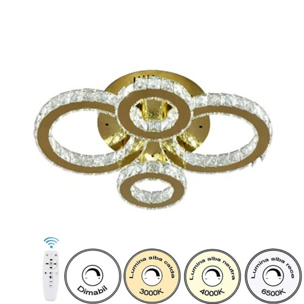 Lustra Led Dimabila 104W Trei Moduri Iluminare Alba Telecomanda d500mm