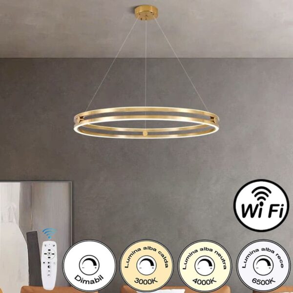 Lustra Led Dimabila Suspendata 136W 8000Lm Trei Moduri Iluminare d600mm Auriu iP20