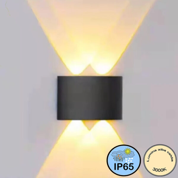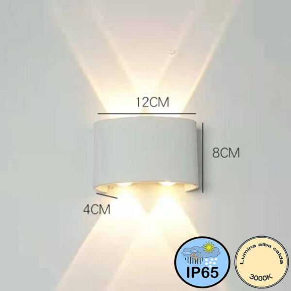 Aplica Led Perete 2x2W 3000K iP65 Alba d120mm