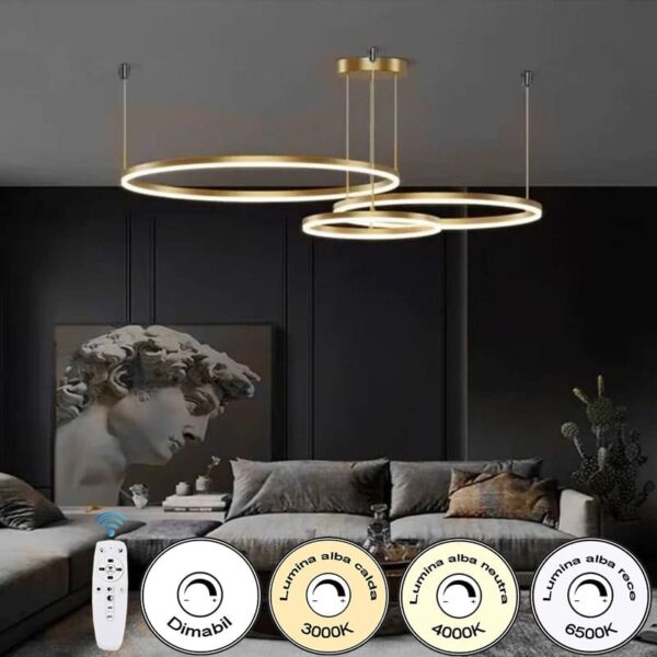 Lustra 74W Led Dimabila Suspendata Trei Moduri Iluminare d600mm Auriu Ip20