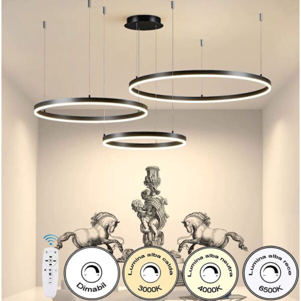 Lustra 74W Led Dimabila Suspendata Trei Moduri Iluminare d600mm Negru Ip20