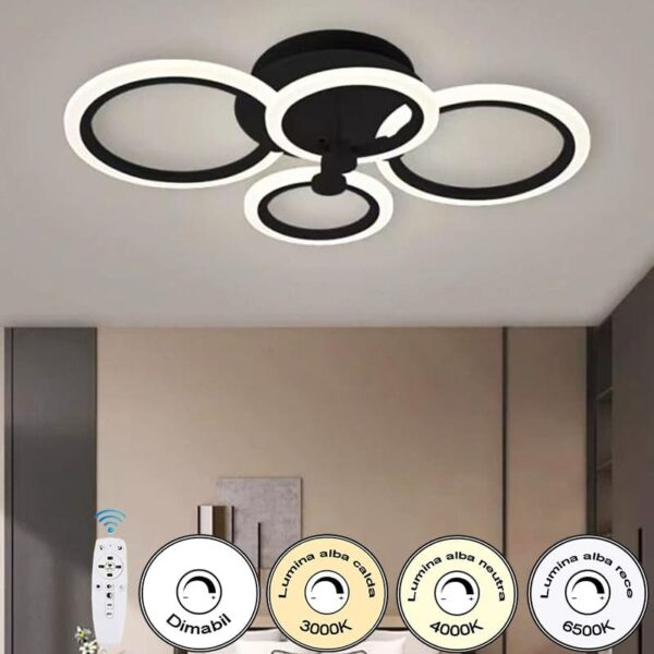 Lustră 74W Negru Dimabilă Trei Moduri Iluminare d500mm