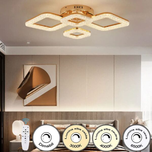 Lustra LED 96W Cu Telecomanda 3 Tipuri De Lumina Intensitate Reglabila Auriu