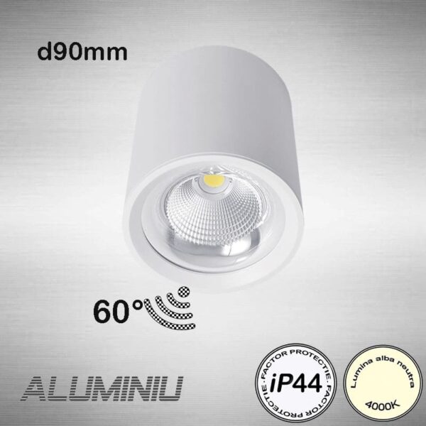 Spot Led Aparent Aluminiu 10W 4000K d90mm iP44 Alb 230V 60°