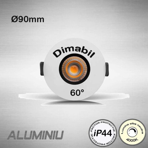 Spot Led Rotund Aluminiu 18W Dimabil 4000K d90mm iP44 Alb 230V 60°