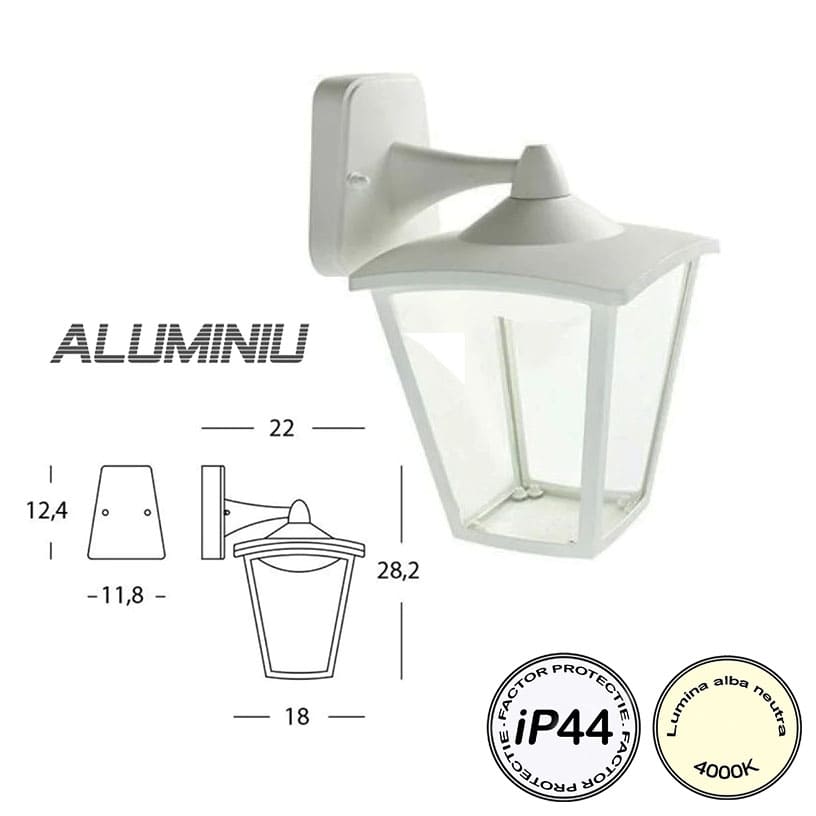 Aplica Led Exterior Aluminiu 7W 4000K h282mm x d180mm Alb iP44