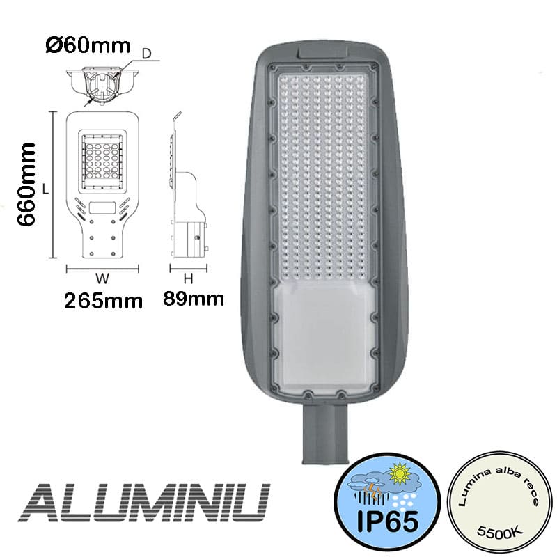 Lampa Led Iluminat Stradal 200W 24000Lm 5500K iP65 Gri