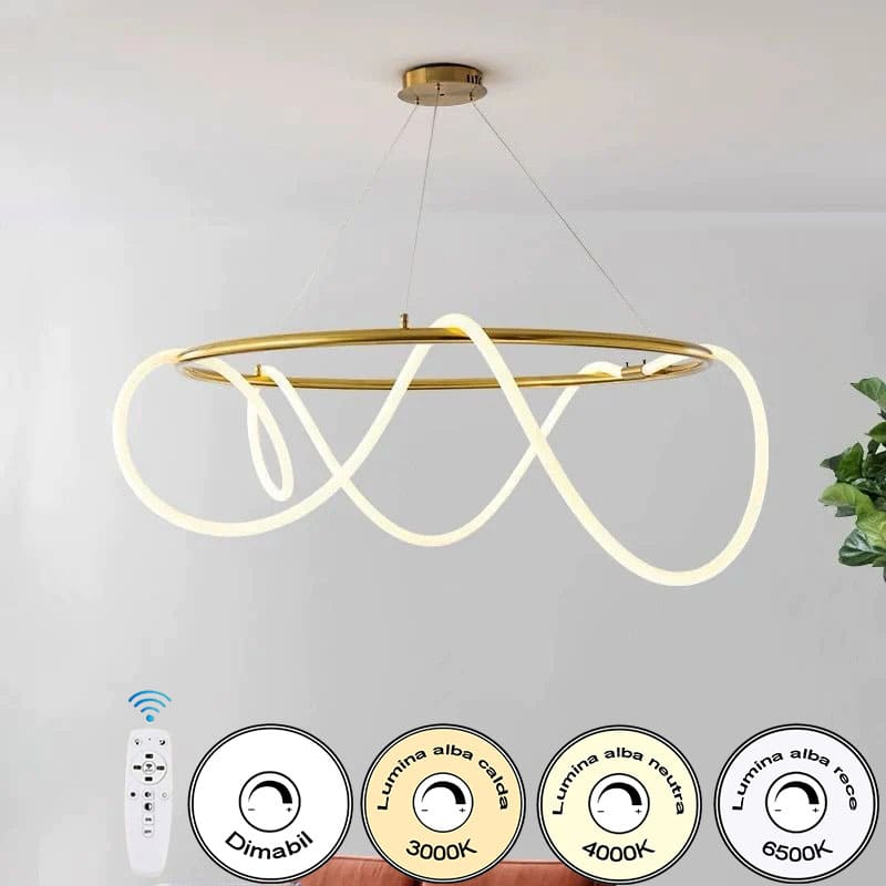 Lustra Led Suspendata Dimabila Neon Flex 45W d600mm Trei Moduri Iluminare iP20 Auriu