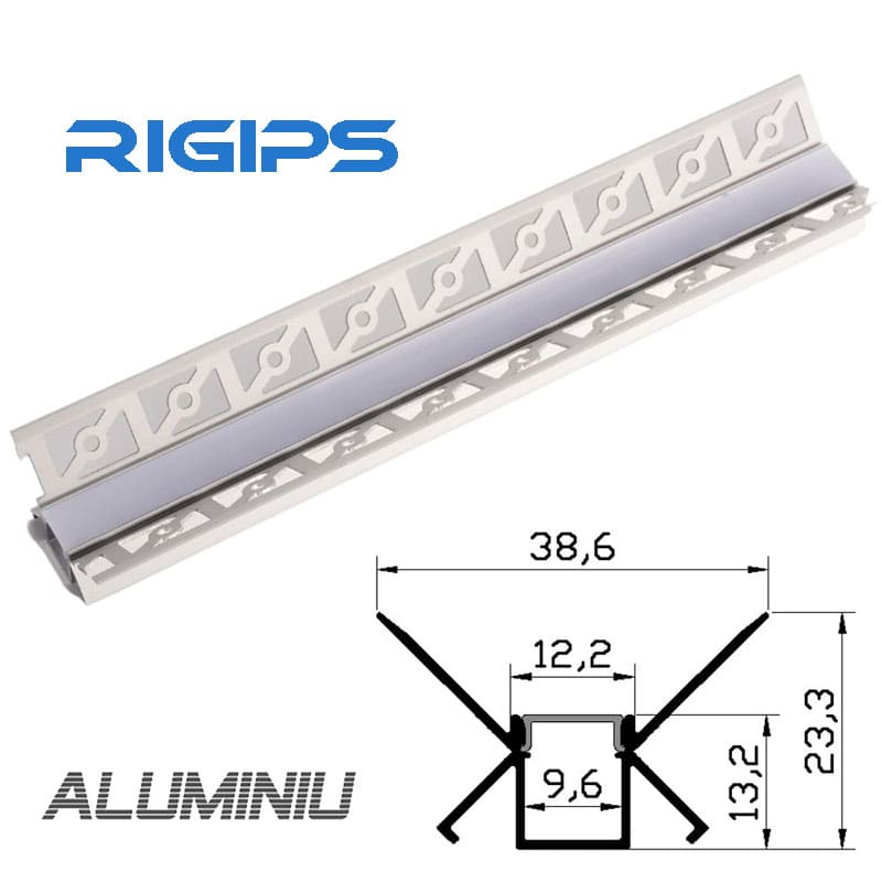 Profil  Banda Led Aluminiu pentru Rigips 2M Colt Interior 38.6×23.3mm iP20