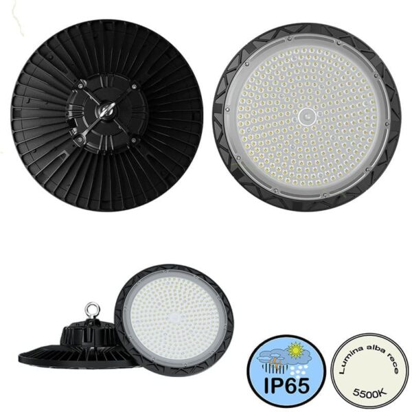 Lampa Led Industriala 200W 32000Lm Ø345mm 5500K Aluminiu Negru iP65 Eficienta energetica +