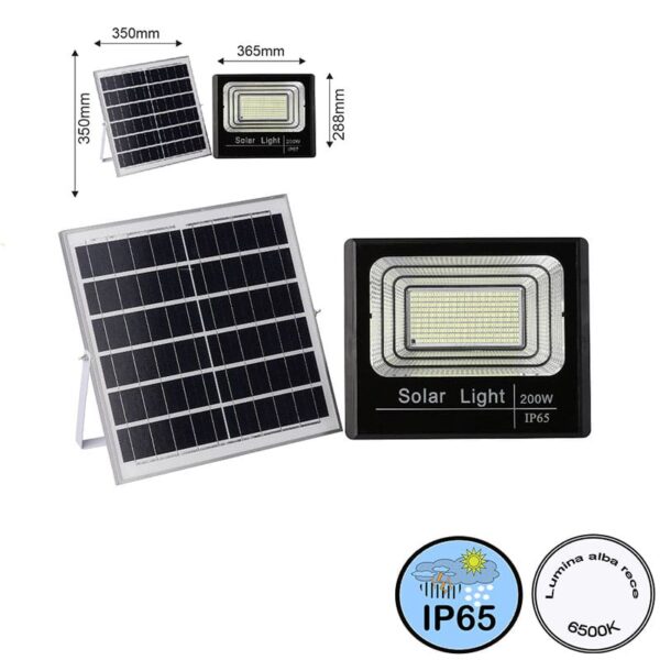 Proiector Led 200W 6500K Negru Panou Solar Monocristalin Telecomanda Baterie 3.2v 12500mA iP65