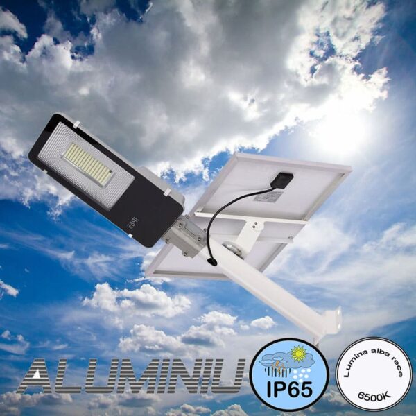 Lampa Led Iluminat Stradal 200W 6500K Panou Solar Monocristal Aluminiu Detasabil iP65