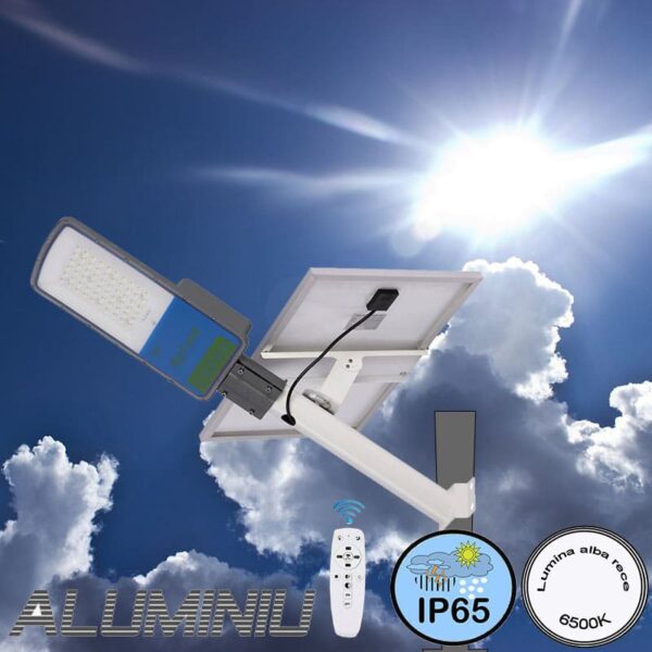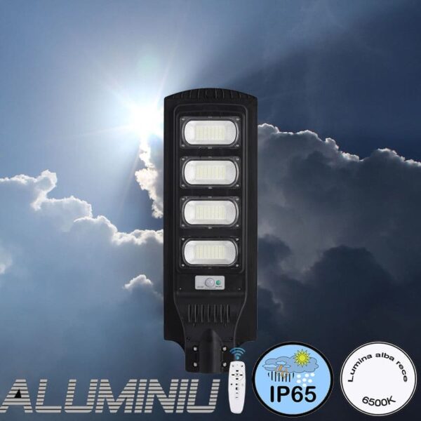 Lampa Led Iluminat Stradal 200W 6500K Panou Solar Monocristal Aluminiu iP65 Telecomanda