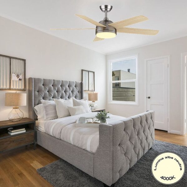 Lustra Led cu Ventilator 20W 4000K d1320mm Crom Lemn