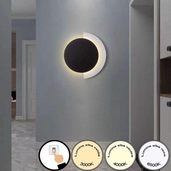 Aplica Perete 20W d240mm Trei Moduri Iluminare Negru iP20