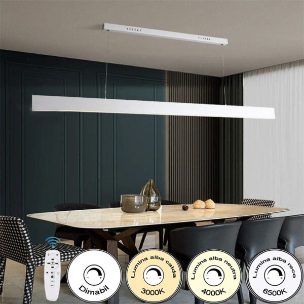 Lustra Led Dimabila Suspendata UltraSlim 36W Trei Moduri Iluminare d1200mm Alba